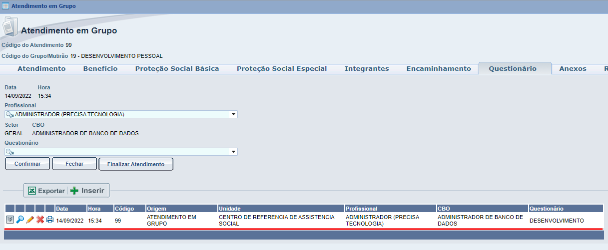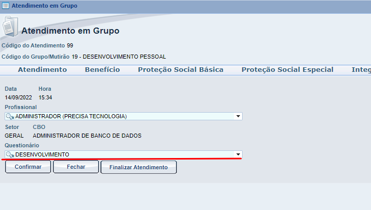 Para estar cadastrando um novo questionário para utilizarmos no atendimento em grupo podemos seguir o seguinte passo a passo :