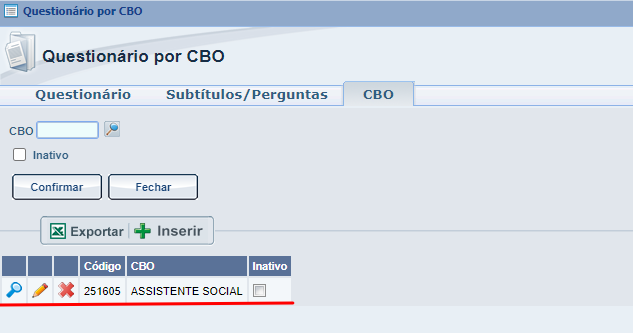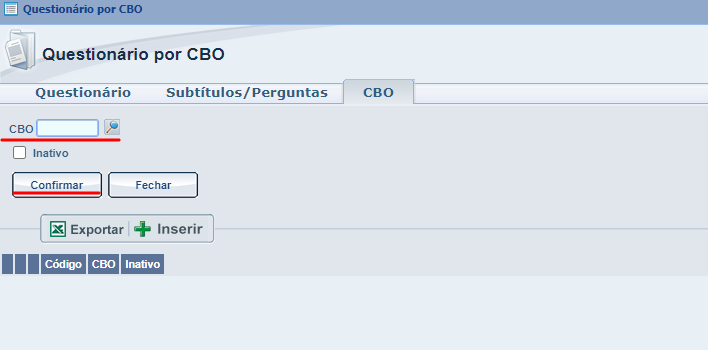 A PARTIR DESTE MOMENTO SERÁ EXPLICADO COMO REALIZAR O CADASTRO DE UM QUESTIONÁRIO POR CBO