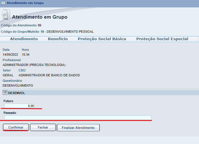 Com todos esses passo a passo e escolhas definidas, acabamos de criar um questionário para que possamos utiliza-lo no atendimento em grupo. Estaremos voltando agora para a aba do questionário NO atendimento em grupo.