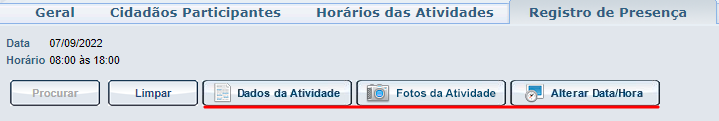 É possivel excluir o horário da atividade? Sim, mas somente antes de você fazer o registro de presença para a atividade (próximo tópico que iremos ver), após você dar presença ao cidadão do grupo não é mais possível excluir o horário da atividade.