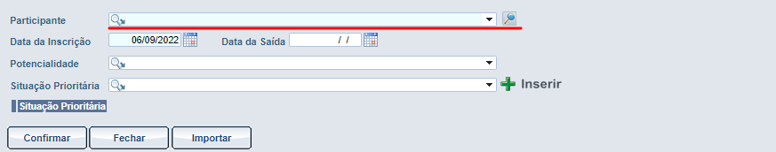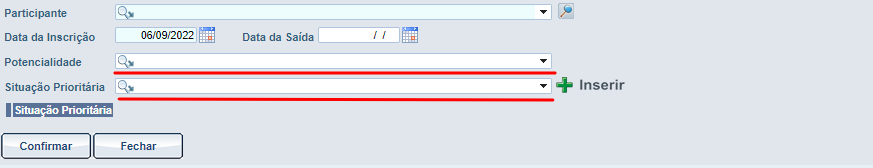 4° Situação Prioritária : Este campo assim como o campo anterior nós cadastramos lá no inicio e nós faremos uso aqui, mas o diferencial desse campo é que temos a opção de cria-las também. Para que uma situação prioritária seja adicionada ao cidadão selecionado podemos clicar na flecha ao final do campo e selecionar a que melhor corresponde ou podemos digitar a situação prioritária desejada (caso você saiba qual é a descrição correta da situação prioritária). Com a opção selecionada basta apenas clicarmos em Inserir ao lado do campo.