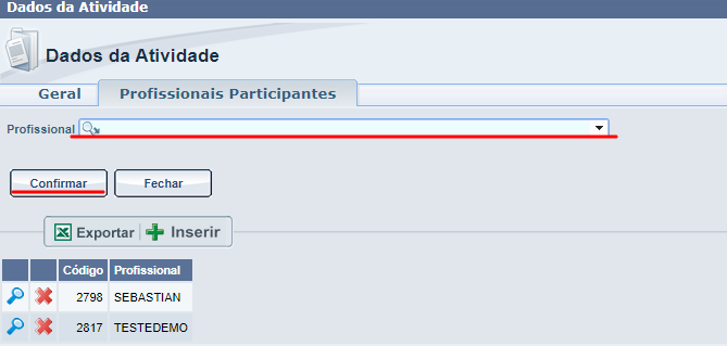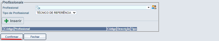 Com tudo isso feito nos resta apenas clicarmos em Confirmar ao lado do campo Fechar e logo abaixo do campo Profissionais.